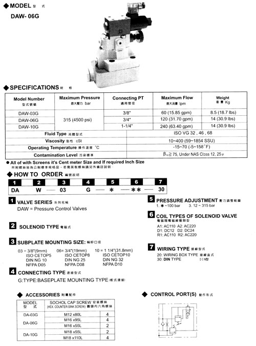 卸載溢流閥型號(hào)說明DAW-03/06/10